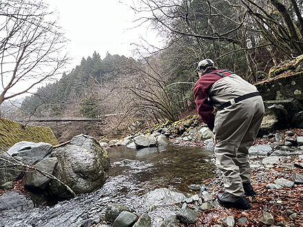 | Fly fishing for Big Rainbow trout at a mountain river in Kanagawa.......Stuart from USA |