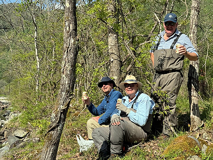| Fly fishing for Rainbow trout at a mountain river in Tochigi.......Steve, Johnson and Ichikawa san from USA |
