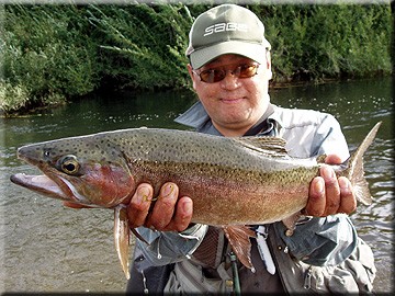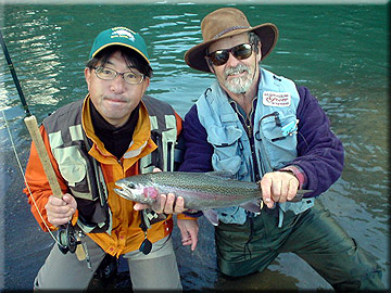 川では30cm位の小型が活発で、50cmクラスは日に5匹位、ブラウンは取れたがレインボーの大型は4Xでバラした。湖は3Xで50cm超を10匹強,バラシ3匹。天気がコロコロ変わり、後半は川が濁り、結果、ドライ、ニンフ、ウエット、と川で、湖でと色んな釣が出来大変楽しかった。これも良いガイドがいればこその釣行でした。