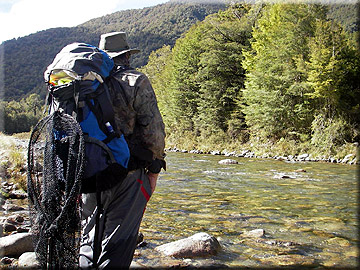 初日はロッジから車で5分くらいの川でダブルニンフの釣りをし、その日の夜にガイドの元締めのマリーの家でのバーベキューに招待されたので、二日目以降にドライでやりたいとリクエスト。二日目はリクエストに応じて林道の奥の山岳渓流で釣りをし、ここでは昼過ぎからシケーダフライでレインボーの反応が良くなり、釣れる魚のほとんどが50cmオーバー。三日目は午前中車で15分くらいの川で4km程釣りあがるが、掛けた魚の引きが強く大半が倒木等に走られてばらし、午後は川幅の広いランギタイキリバー本流でダブルニンフを使って50cm前後の魚を数匹。いずれもサイトフィッシング中心で面白い釣りでした。あと、ランギタイキリバーロッジの食事も美味しくて満足いくものでした。