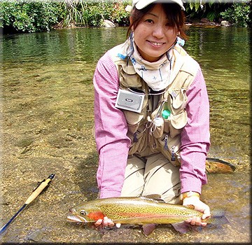 3日間、道南道央の旅に行ってきました。ガイドさんの丁寧な説明でいろいろな川(一日2−4箇所ぐらい)を回りました。まずはすばらしく川がきれいで、新緑のなかマイナスイオンをすいながら気持ちよく釣りました。魚の反応もよく、本州よりも魚影の濃さが感じられます。サイズも最後にでた42cmのブラウンの他、アメマスの尺以上をはじめ、たくさんのきれいな魚たちに遊んでもらいました。例年にない温かさで、GWでもドライに反応があったことは感激です。いい釣り、いい温泉にうまいメシと酒で、北海道はやっぱりすばらしいです!!ガイドさんありがとうございました。 |