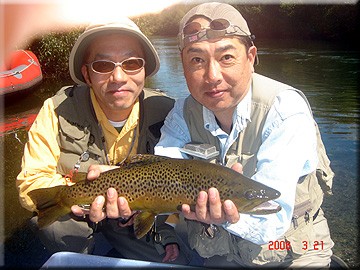 急な手配ありがとうございました。1日目はなれないトレーラーシステムに戸惑いましたが、2日目、3日目は慣れてきました。ライズしていてもドライフライに全く反応しないシビアぶりに驚きました。(大型のドライフライでは全く揚げられませんでした。)北海道でニジマス、ブラウンに使っているフライが全く通用しませんでした。オフシーズンで体がなまっている状態で、あれだけの距離を歩き、ガイドの熱血スパルタ指導(笑)の釣りをしたのでかなり疲れましたが、とても楽しかったです。ガイドからインジゲーター用のドライフライも頂いてきたので、北海道の釣りで生かしたいと思います。フライキャリア5年で50cmオーバーは1匹でしたが、今回の釣行では何匹もあっさり釣れたので驚きです。絶好調の渚滑川、十勝川、尻別川でも全くニュージーランドにはかないません。川の風景、渓相も最高でした。機会があれば、また行きたいと思っています。どうもありがとうございました。