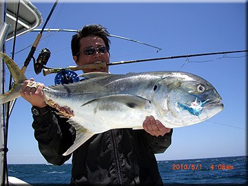 30kgサイズです。IGFAに準じ、クラスティペットは20ポンドです。いい釣りができました。ありがとうございました。 |