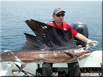 (ルアーキャスティングで挑戦した、ロンピンのセイルフィッシュです。丸橋氏のサイトに動画付きの詳しいロンピン釣行報告があります。詳細はそちらをご覧下さい。) |