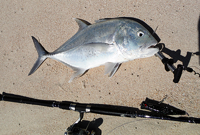 今回の久米島の手配、誠にありがとうございます。おかげ様で、念願のショアからのガーラを獲ることができました。釣った時は、余り大きくないと思ったのですが、帰って写真をみるとグッドなサイズでした。自宅にてCADで計測したところ推定65〜70cm、びっくりしました。 |