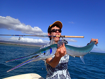 悔しさが残りますがリーフエッジのキャスティングへ。ミノーで美しいグルーパーをキャッチ。トップウォーターでは、強力なパピオがヒットし、楽しませてくれました。また、ハワイでAhaと呼ばれるダツも強い引きで最高に興奮しました。