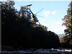 | この日は、ヘリコプターを使って、陸路ではアクセスが難しい川へ。 |