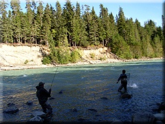 | 昨年初めて訪れた、カナダスキーナリバー水系のスティールヘッド。その大河川で経験した、洗練されたウェットフライフィッシングは、自身に新しいフライフィッシングの世界をもたらした。っと少し大袈裟ですが、とにかく、それが忘れられずに今年も再訪した10月初旬。昨年と同じようなパーフェクトコンディションのスティールヘッドや、バッキングラインを引き出し続けるコーホーは姿を見せてくれるだろうか・・・。 |