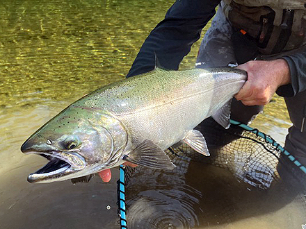 今年のスキーナ水系はローウォーターでスティールヘッドの遡上量は半分以下。サスタットロッジの釣果も厳しい条件の中 4匹のスティールをカメラに収めることが出来たのはラッキーだったと感じております。 |