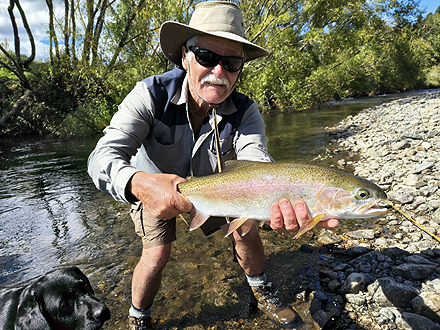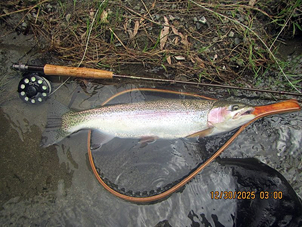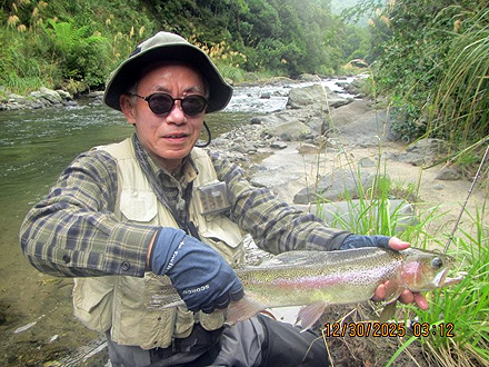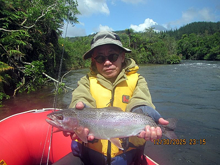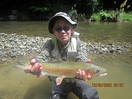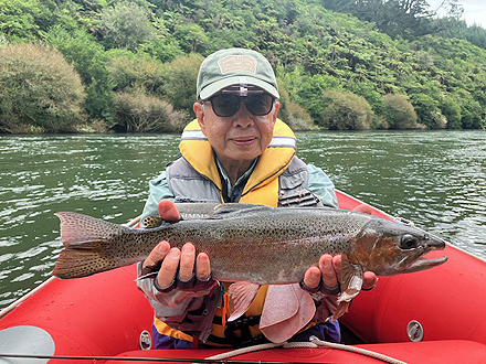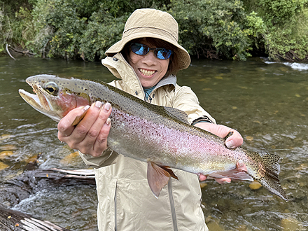 ニュージーランド北島の釣行は初めてです。天候が比較して安定した時期、かつドライフライシーズンも始まっており、マリーさんの熱心なガイドもあって好調な釣果でした。6日間の釣りでしたが、うち3日はランギタイキ川のボートフィッシングを選択しました。マリーさんがライズを見つけボート上からキャストあるいはボートを降りてライズを狙いました。瀬ではボートを降りダブルニンフシステムでインディケーターフィッシングをしました。ランギタイキ川、その支流ストリームでの釣果は50本以上のフッキングでネットインは40本強でした。約半数はドライフライでの釣果です。全て50cm前後、最大58cmで、レインボーが9割でした。全てのレインボウの引きは強烈で、そのやりとりには本当に魅了されます。素晴らしい6日間の経験でした。 |
