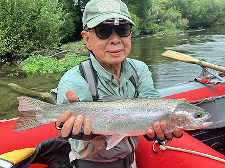 先日はお世話になりました。無事帰国しました。釣りはキングサ-モン 1匹でした。他の人は同サイズのRainbowをキャッチしていました。Rainbowは美しいですね。 |